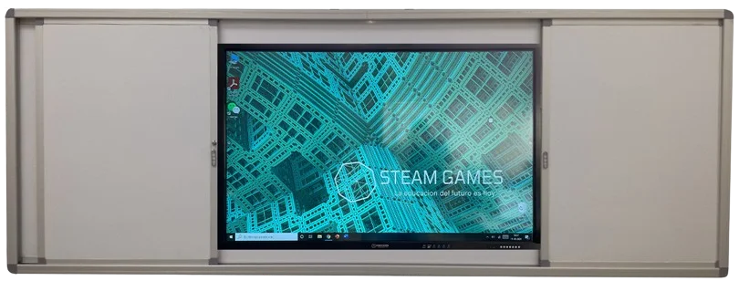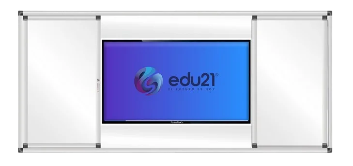 La solución versátil, segura y estética que combina pizarra acrílica tradicional con protección total para pantallas interactivas. Su sistema deslizante permite trabajar de forma tradicional, ocultar la pantalla o integrar ambos métodos al mismo tiempo.